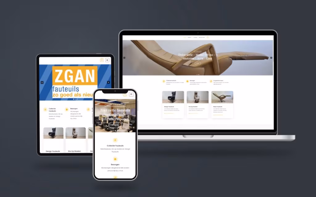 Het resultaat is een professionele en aantrekkelijke website die de identiteit van ZGAN-fauteuils weergeeft en die het bedrijf in staat stelt om zijn producten online te presenteren en te verkopen.